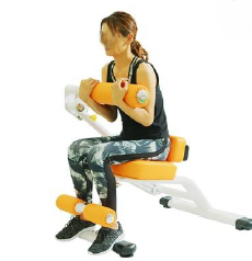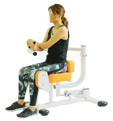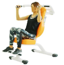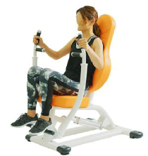 シートに座り、胸の開閉運動を行います。胸と背中の筋肉を鍛えます。ハンドルを持つ位置を変えることで、鍛える部位を意識しやすくなります。バストアップや猫背予防に効果的です。