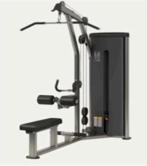 バーを上から引っ張る動作と、前から引く動作で、背中をトレーニングするマシン。